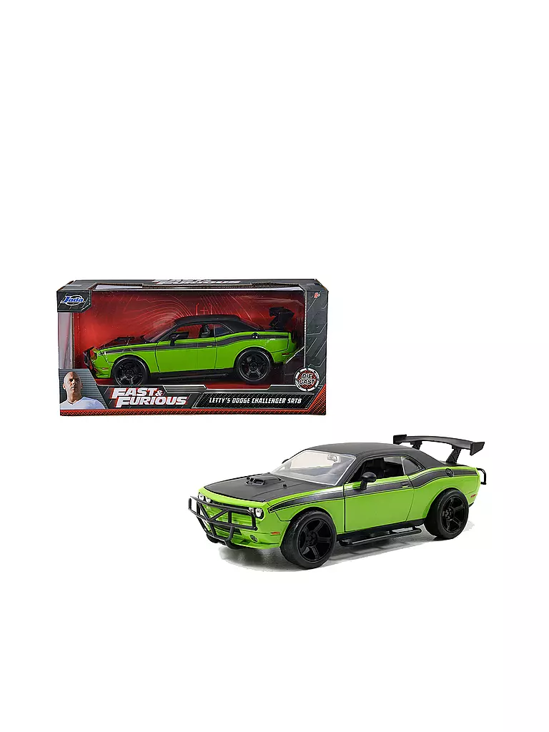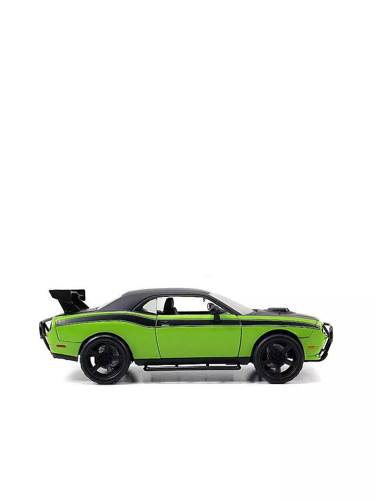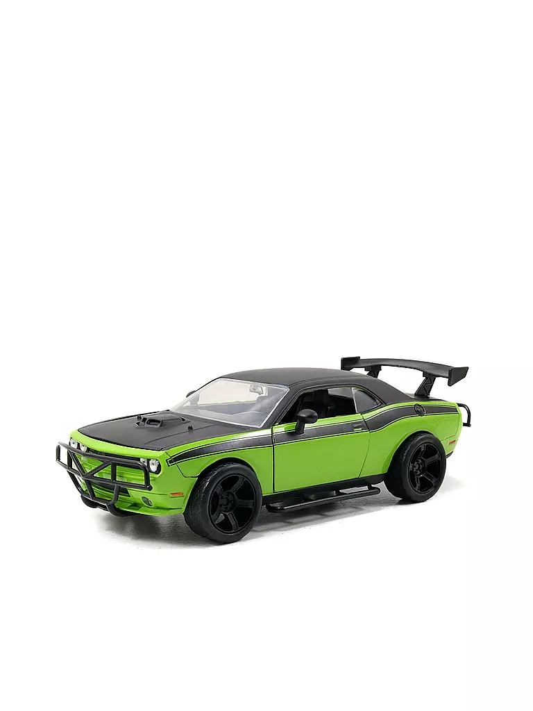 Helfen Sie Dom und seiner Crew bei der Fortsetzung ihrer weltweiten Erfolge im unaufhaltsamen Franchise, das auf Geschwindigkeit aufgebaut ist! Die Fahrzeuge sind mit Stilmitteln direkt aus den Filmen ausgestattet und werden den Ansprüchen von Fans und Sammlern gleichermaßen gerecht. Sammeln Sie sie alle, um Ihr eigenes schnelles Team zusammenzustellen und den Tag zu retten! Der Dodgge Challenger SRT8 ist aus Zinkdruckguss und im Maßstab 1:24. Zu öffnende Türen, Kofferraum & Motorhaube.
