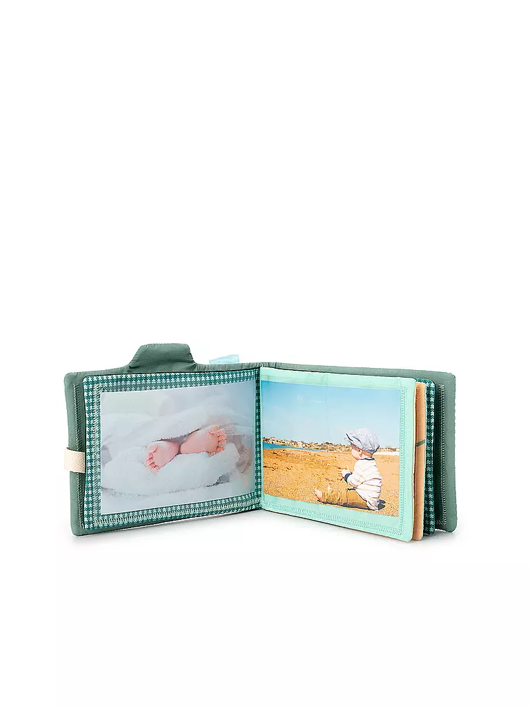 Setzen Sie sich in Pose – und klick! In dieses goldige Fotoalbum können Sie 10 Fotos einstecken. Ideal zum Mitnehmen zu Oma und Opa oder in den Kindergarten.