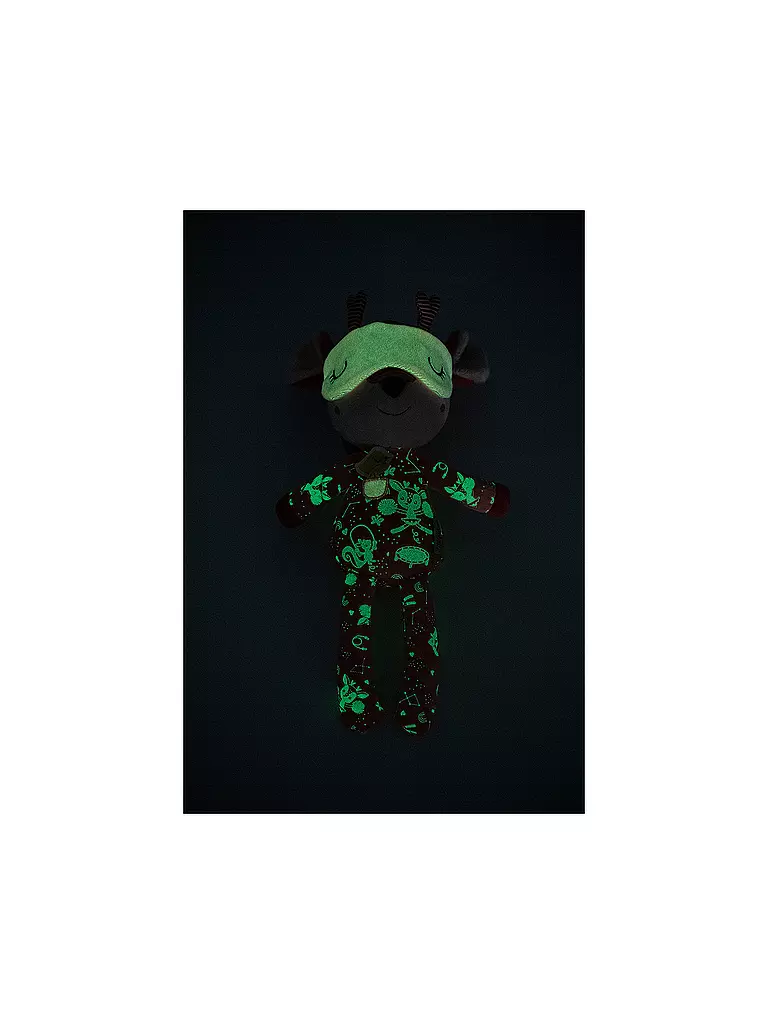 In Gesellschaft seiner Freundin Stella wird Ihr Schätzchen süß träumen. Stella trägt einen Zauberschlafanzug, der im Dunkeln leuchtet. Gute Nacht, mein Engelchen.