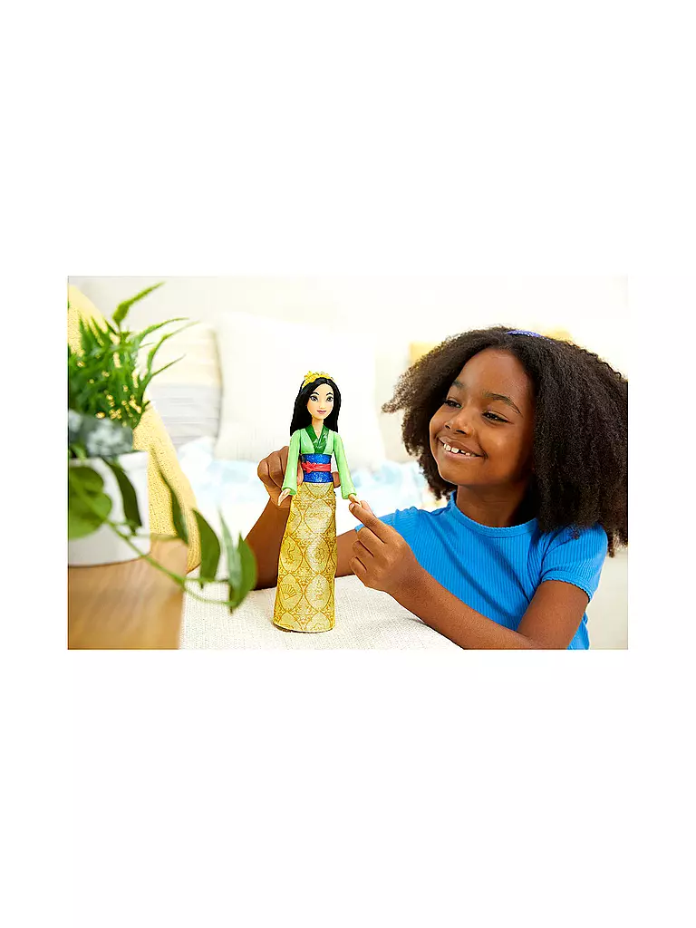 Inspiriert von der Zeichentrickfigur des beliebten Disney-Films ist diese Mulan-Puppe bereit, zu zeigen, dass alles möglich ist! Diese bewegliche Modepuppe trägt ihr typisches Outfit aus dem Film mit abnehmbaren Schuhen und einem Diadem. Es besteht aus einem Glitzeroberteil und einem abnehmbaren Rock mit einem Muster, das in der Geschichte von Mulan eine Rolle spielt. Diese Disney Prinzessin-Puppe hat lange Haare, die frisiert und gekämmt werden können! Ein perfektes Geschenk für Kinder, um damit Geschichten aus ihren Lieblingsfilmen nachzuspielen oder sich eigene Abenteuer auszudenken. Fans können alle Disney Prinzessin-Modepuppen sammeln und das ultimative Abenteuer erleben! Alle Artikel separat erhältlich.