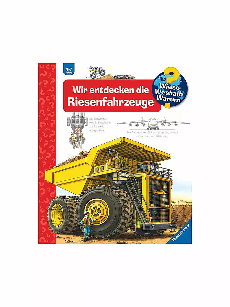 Sie sind riesig und haben Superkräfte – Riesenfahrzeuge! Der Schaufelradbagger etwa ist so hoch wie ein mehrstöckiges Haus. Containerschiffe transportieren Tausende Metallkisten auf einem Raum so groß wie vier Fußballfelder. Das Riesenflugzeug Airbus A380 erstreckt sich mit zwei Passagierdecks und den Frachträumen sogar über drei Ebenen. Besonders faszinierend sind die coolen Monstertrucks, die kein Hindernis aufhält. Detaillierte Bilder und Klappen mit Wow-Effekt sorgen bei kleinen Technikfans für riesige Begeisterung.