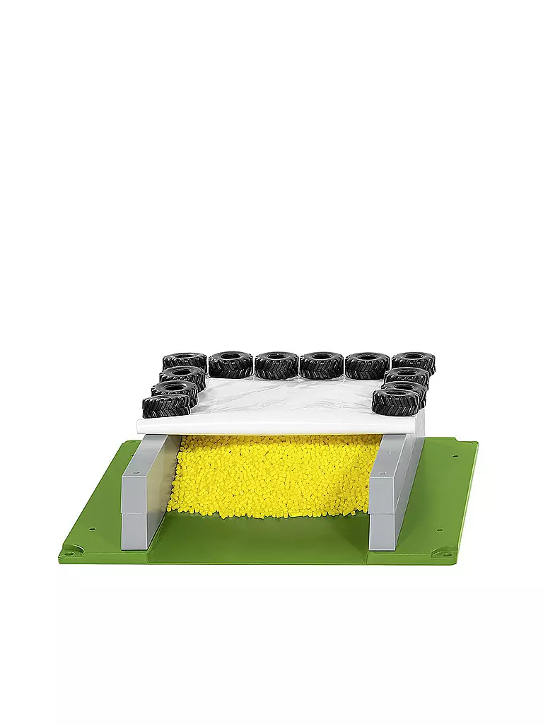 Siloset für die SIKU-Farmlandschaft im Kinderzimmer mit einem Fahrsilo, einer Abdeckplane aus gummiertem Material sowie 12 Reifen zum Halten der Plane und Granulat zum Befüllen des Silos. Das Set eignet sich perfekt als Ergänzung zum Farmer-Set (#5601), kann aber selbstverständlich auch einzeln bespielt werden.