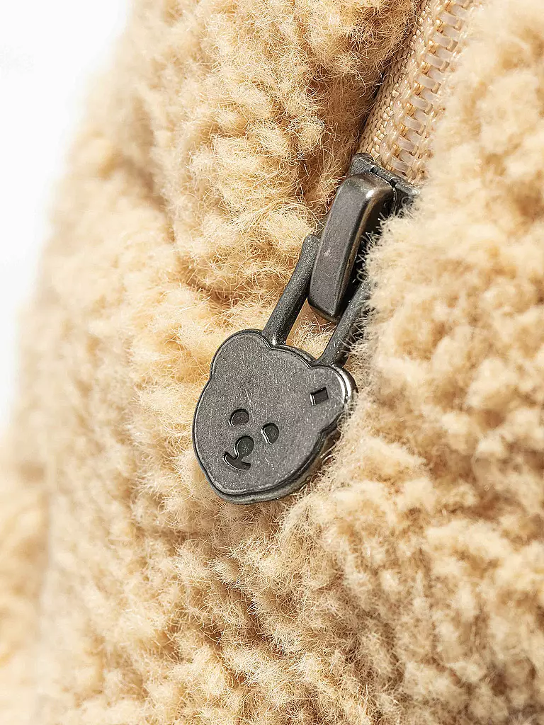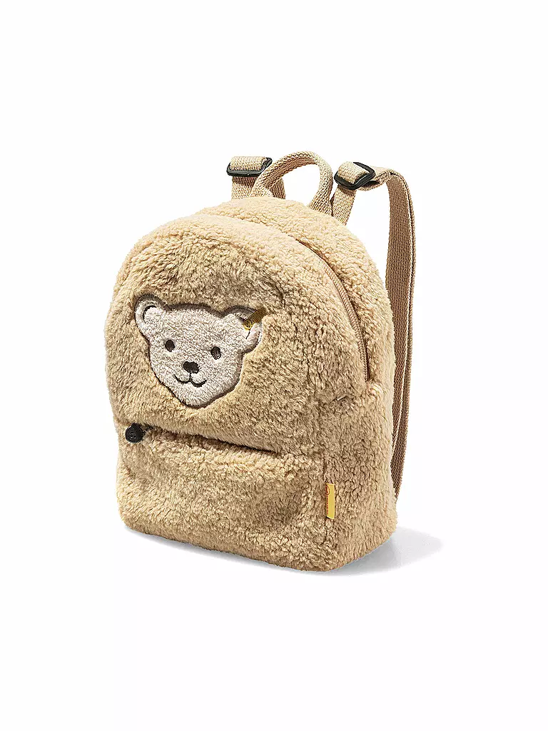 „Soo schön!“… Der 24 cm große, karamellbraune Rucksack mit Quietsche aus kuschelweichem Teddyfleece ist ein Lieblingsstück aus dem Steiff Atelier zum Jubiläum „120 Jahre Teddybär“. Ein großes und ein kleines Fach, jeweils mit farblich abgestimmtem Reißverschluss und Teddyzipper, stabile Tragegurte und ein Tragegriff machen ihn zum vielseitigen Alltagsbegleiter. Dazu passen das fröhlich grüßende Steiff Teddybärmotiv und – einfach drücken! – die prächtige Quietsche. Keine Sorge: Als Kissen fürs kleine Nickerchen eignet sich der kuschelige Lieblingsrucksack trotzdem.