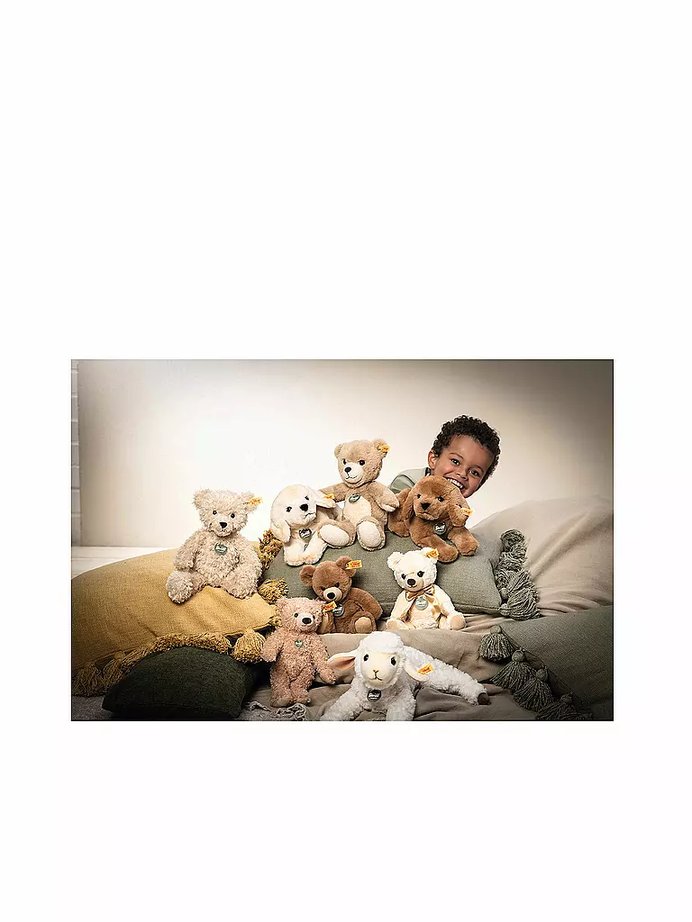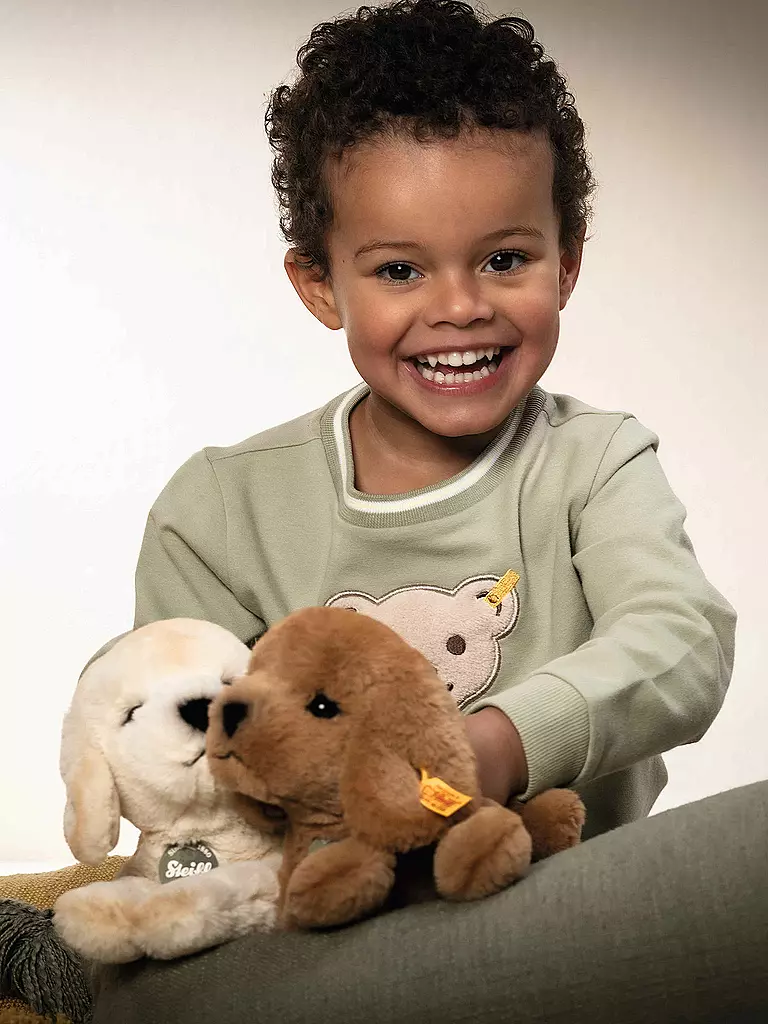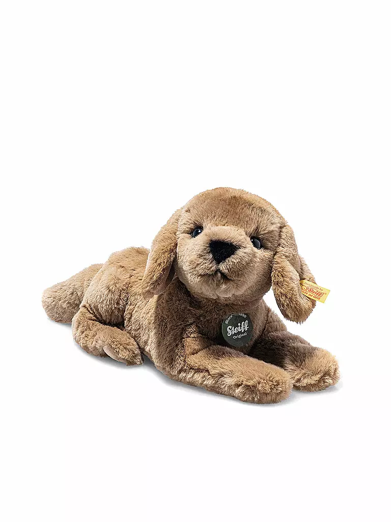 Teddies for tomorrow Lenny Labrador in stilvollem Tabakbraun: Der 23 cm große gemütliche Begleiter passt gut zum blonden Lenny aus der Herbstkollektion 2022. Nach dem Motto „Raus mit dem Plastik aus der Natur“ setzt er ebenfalls auf recycelte PET Flaschen – im streichelweichen Plüsch ebenso wie in der Füllung seines hübsch geformten Körpers. Lennys lange, weiche Ohren eignen sich prima zum Eingraben für kleine Hände, sein Blick ist unwiderstehlich, seine Kuschelliebe unendlich… Ein Freund fürs Leben!