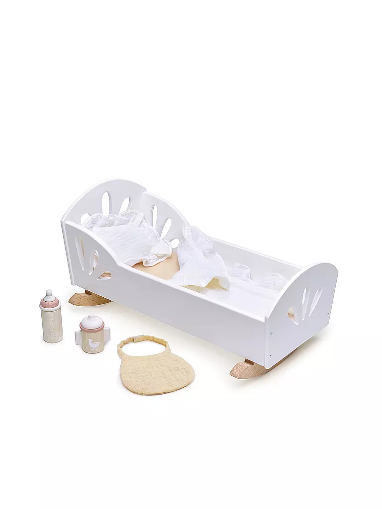 Die schlichte, weisse Puppenwiege im Schwan-Design für kleine Puppenbabys oder süsse Teddybären. Sie schlafen herrlich auf der weichen Matratze, dem kuscheligen Kopfkissen und der Decke. Gefüttert werden sie mit Flasche und Schnabeltasse. Produktgrösse: 37.7 x 21.5 x 20 cm