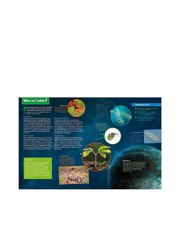 Das Wunder der Evolution entschlüsselt dieses Sachbuch für Kinder. Es beleuchtet alle Aspekte des Lebens – von der ersten Zelle im Urmeer bis hin zum Homo Sapiens. Die jungen Leser segeln mit Charles Darwin um die Welt, erforschen den brasilianischen Regenwald, die Pampas Argentiniens, die Anden und die Galapagosinseln. Was brachte Charles Darwin auf das genial einfache Prinzip der natürlichen Auslese? Welche Geschichten erzählen die versteinerten Knochen eines elefantengroßen Riesenfaultiers? Und was musste geschehen, dass Tiere den Schritt vom Wasser ans Land wagten? Und: Lassen sich Mitgefühl und Freundschaft evolutionär erklären? Eine große, allumfassende Entdeckungsreise zum Wunder des Lebens!