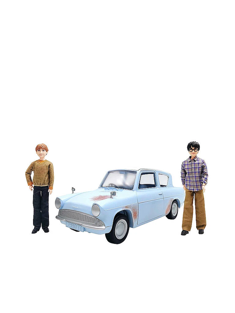 Dieses Set zum Sammeln enthält eine Harry Potter-Puppe, eine Ron Weasley-Puppe und eine Nachbildung des legendären Ford Anglia aus „Harry Potter und die Kammer des Schreckens“.