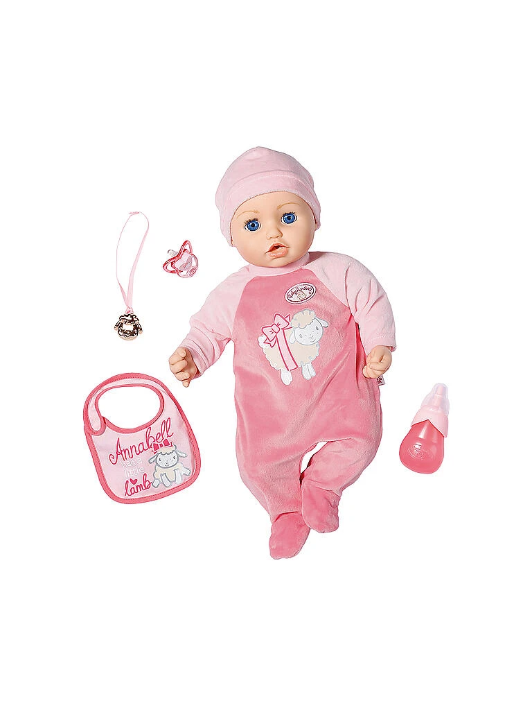 Baby Annabell Annabell 43cm mit Strampelanzug und Mütze. Inklusive Latz, Flasche, Schnuller und Kette.